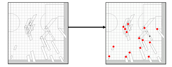 Puppeteer: The camera emulation module emulates real game with full set of players and ball. One of the presentation modes of this module is presented below:
