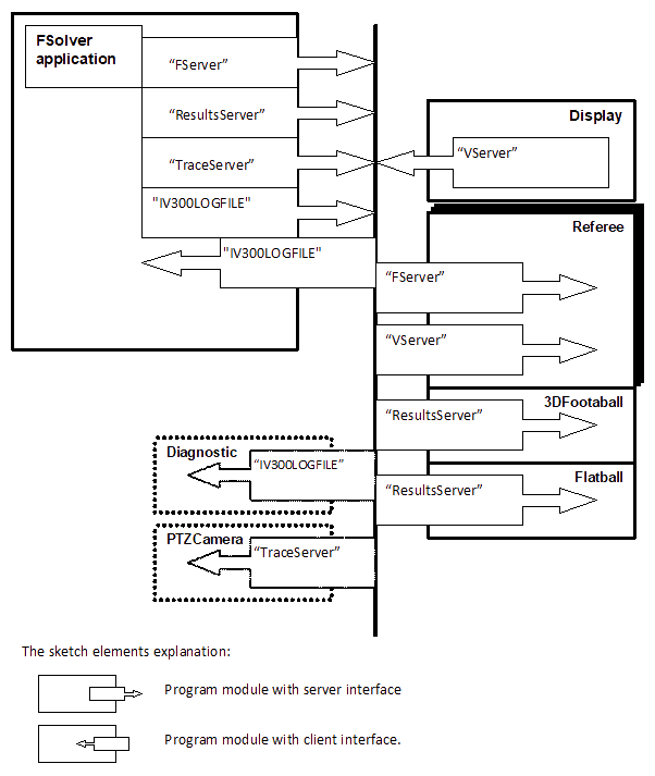 The Referee is the camera and primary processing module. The number of the Referee modules is equal to the number of cameras in the system. Usually, the number of the modules is from 4 to 6. This is crucial module in the system. It receives input data with the rate about 2 MB/s, and passes after processing just about 200 B/s -2 kB/s for final processing. The module can be divided on two parts: