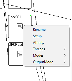 In common gadget has setup property, it's possible to rename it and set its affinity (bind it the specific logic processor). Some gadgets have additional properties such as type of processing and output mode. In addition, some gadgets can be replicated, i.e., run several working threads in them but it looks like a single gadget.